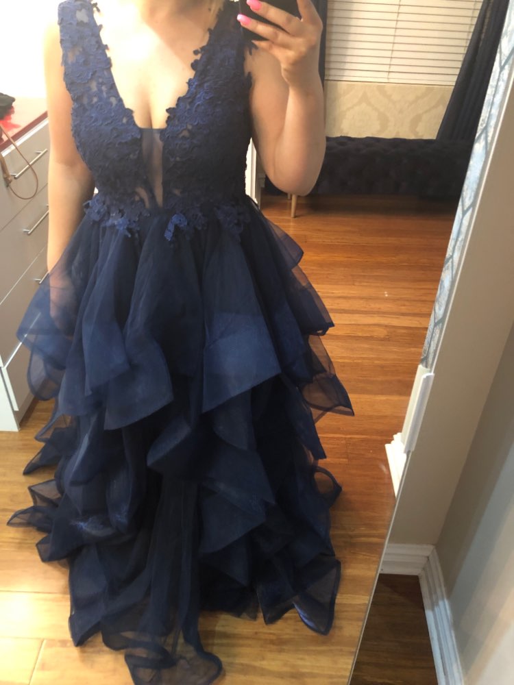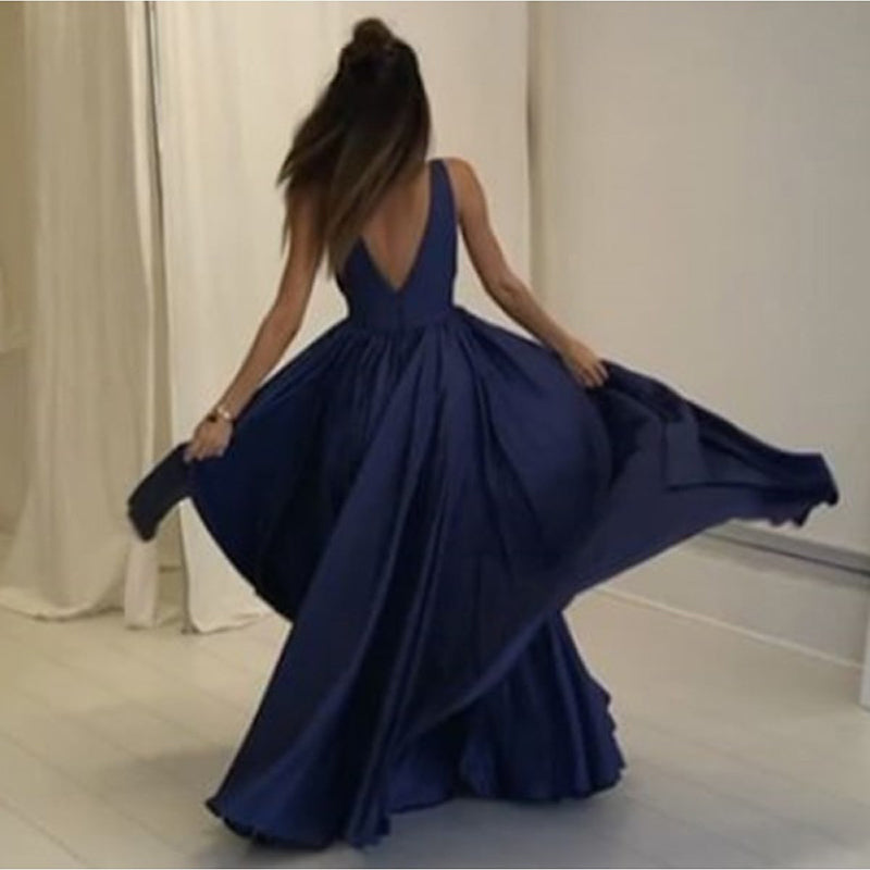 Navy Blue Plunge Sexy V Neck Dresses 2018 Prom Long Girls Evening Party Gown Vestido De Festa
