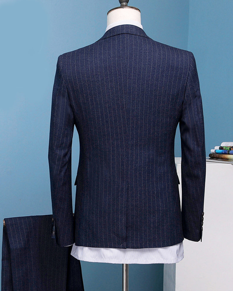 Navy Blue Custom Made Men Suits Stripe Men's Blazer Slim Fit Wedding Male Groom Tuxedos suit prom (Jacket+Pants+Vest3 Piece