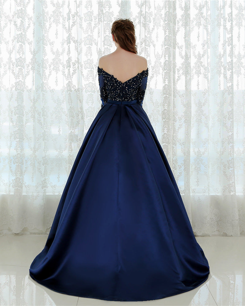 Navy Blue Women Formal Prom Dresses Long With Beading Off the Shoulder PL5549