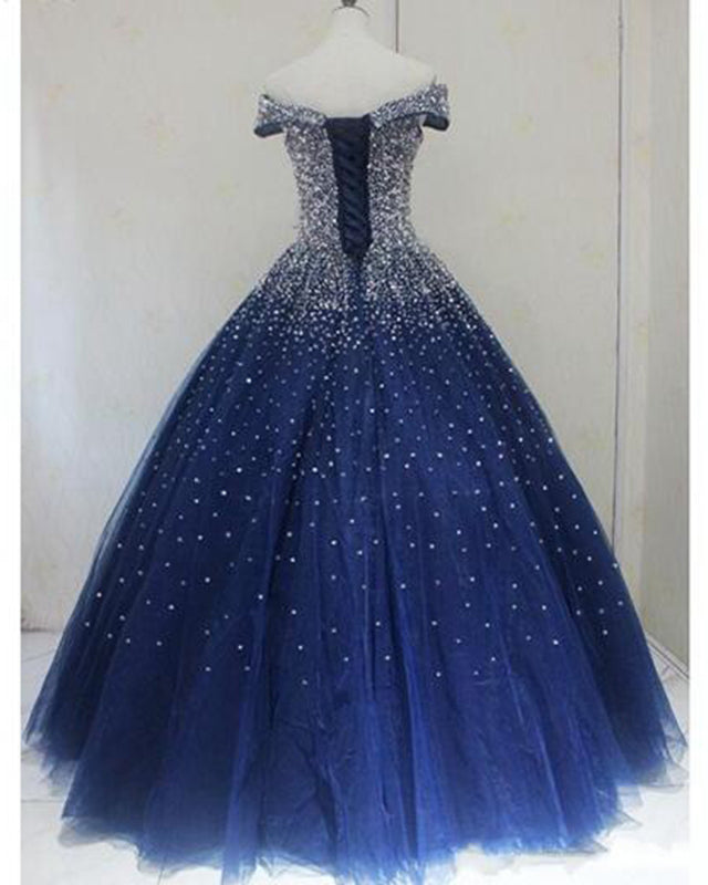 Navy Blue Sparkly Ball Gown Quinceanera Dresses 2022 Vestidos De 15 Años Off Shoulder Sweet 16 Debutante Party Dress PL08192