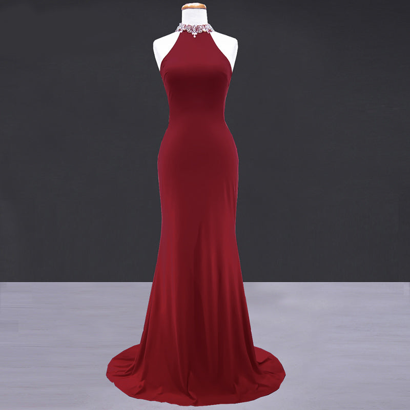 New High Neck Halter Fitted mermaid Formal Gown Red Prom 2018 Dresses Long Women Wear For Evening Party