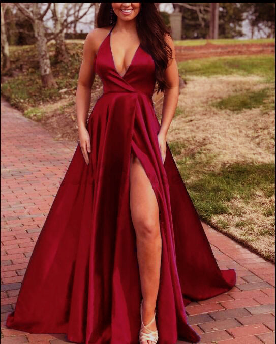 New Girls Graduation Halter Green Slit Long Prom Dresses PL6629