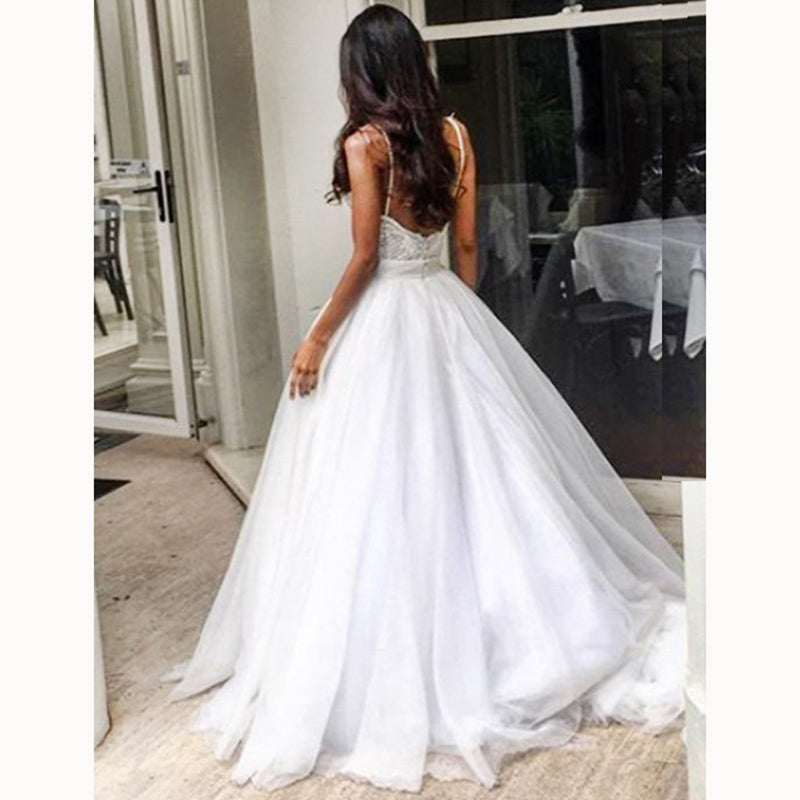 Sexy Backless Spaghetti Straps Ball Gown Wedding dresses White Bridal Gown 2018