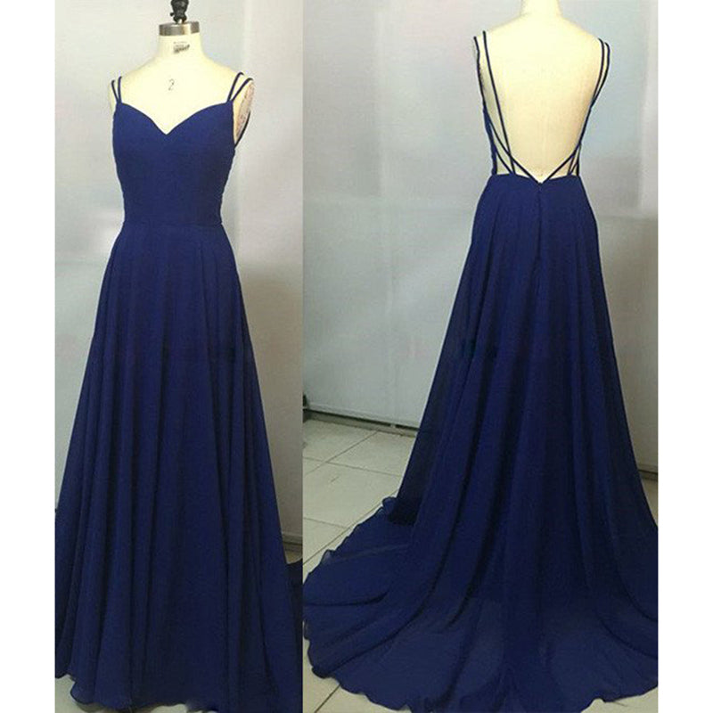 Sexy Backless Spaghetti Straps Royal Blue Prom Dresses