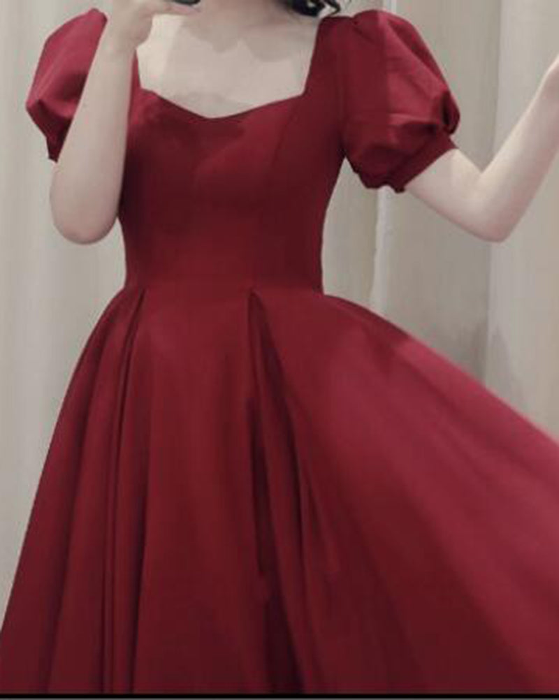 Short Puffy Sleeve Princess 1950s Prom Dress Tea Length Short Girls party Wine Red Graduation Dress SP10309