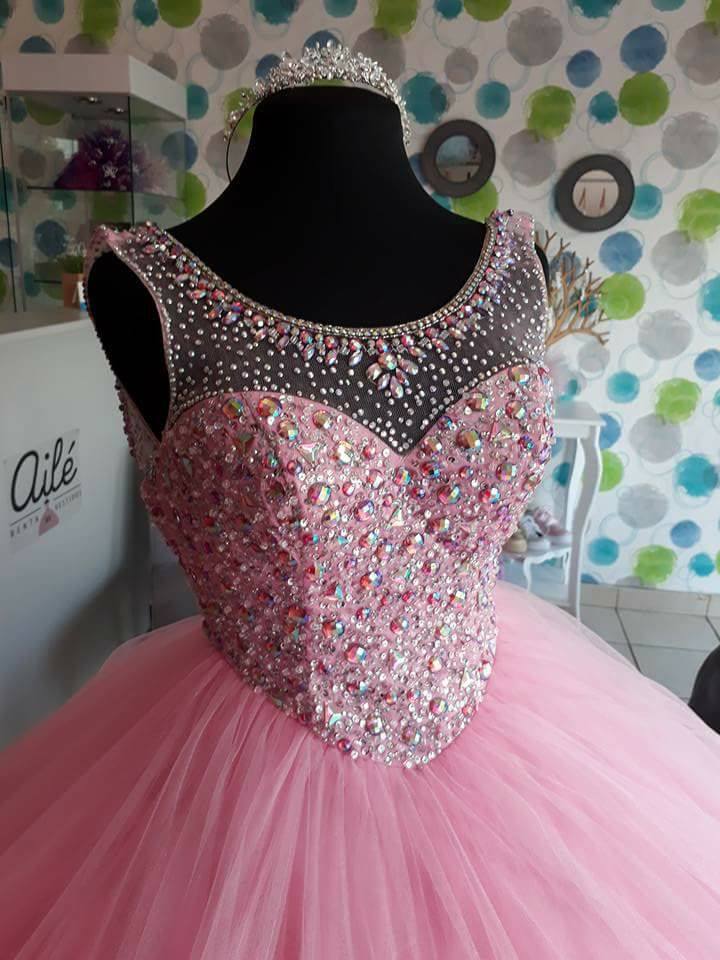 Siaoryne Amazing Pink Scoop Neck Girls Sweet Sixteen Prom Dresses Quinceanera Ball Gown with Beading PL7332