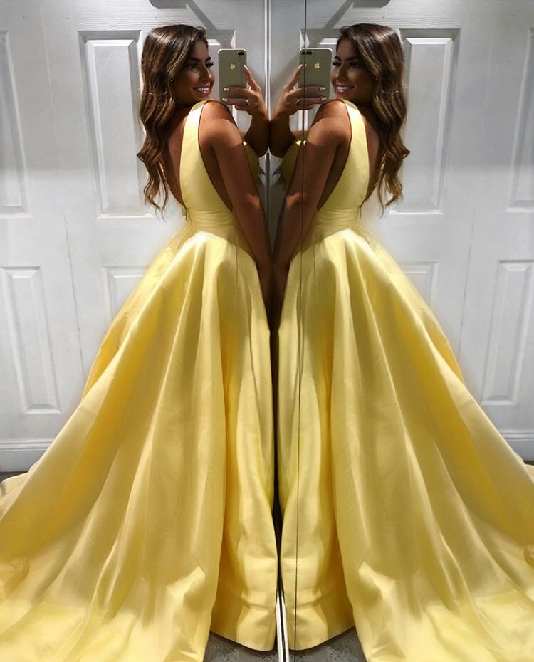 Siaoryne A Line Satin V Neck Girls Teal/Yellow Prom Dresses Long 2019 PL1115