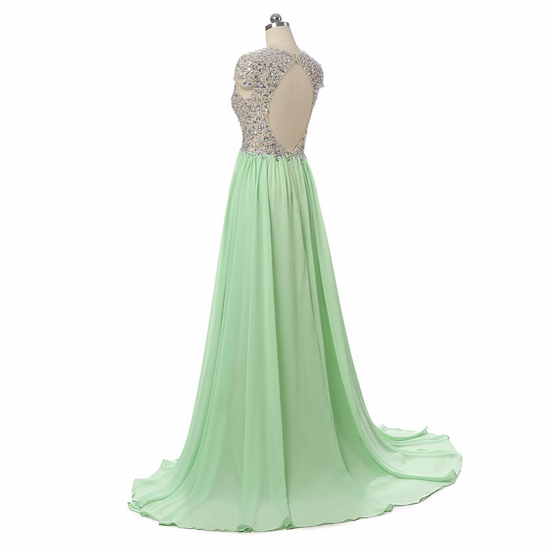 Siaoryne LP007 Cap Sleeves Crystal Long Chiffon Prom Dresses with sexy Split