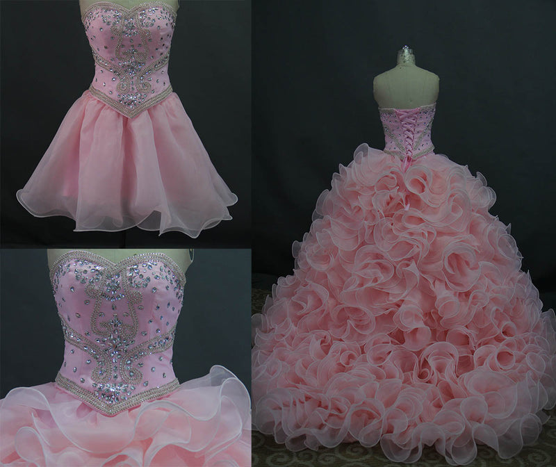 Siaoryne LP015 Sweetheart Two Pieces Ball Gown Quinceanera Dress ,Pink Puffy Organza Prom Dress for Sweet 15 birthday party debutante Gown