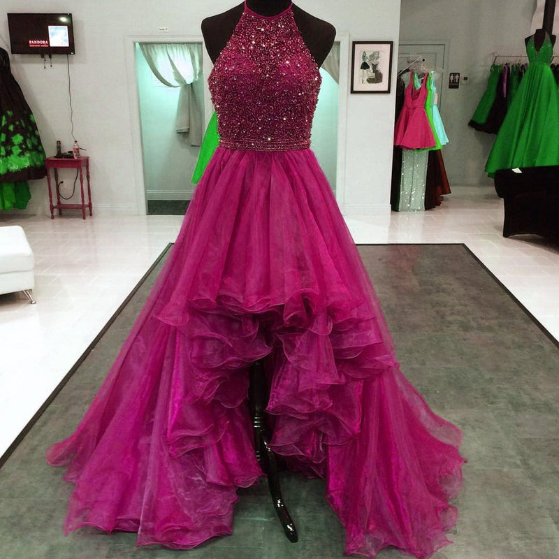 Siaoryne LP010 Puffy Organza Sexy Backless Halter A line High Low Prom dress Front Short Long Back evening Gowns