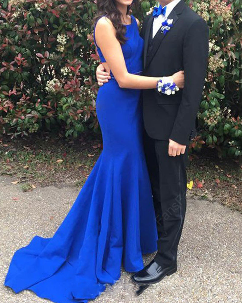 Boat Neck Royal Blue Mermaid Fitted women Party Dresses Long Formal gown PL512