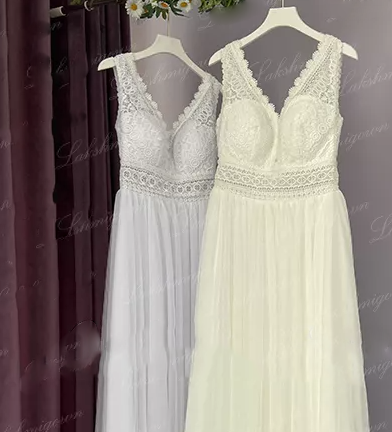 Boho Wedding Dresses 2021 V Neck Beach Lace Bridal Wedding Gowns Elegant Bohemian Tulle A Line Bridal Dress