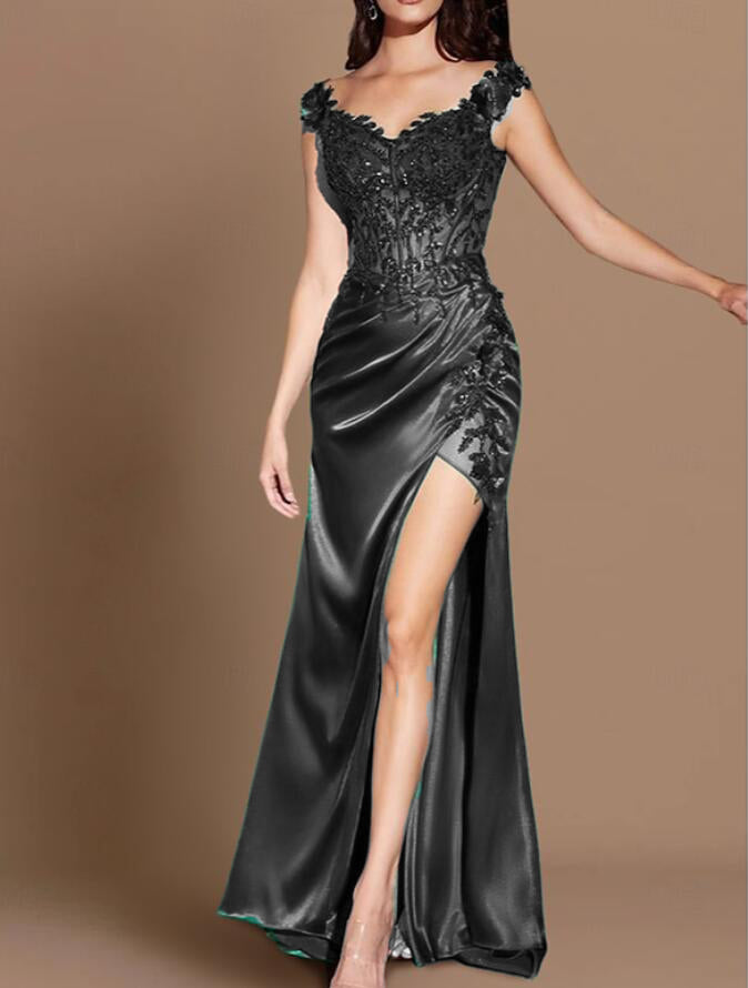 Dark Green outfit Corset Sweetheart Long Prom Party dresses with Belt High Slit Leg PL541