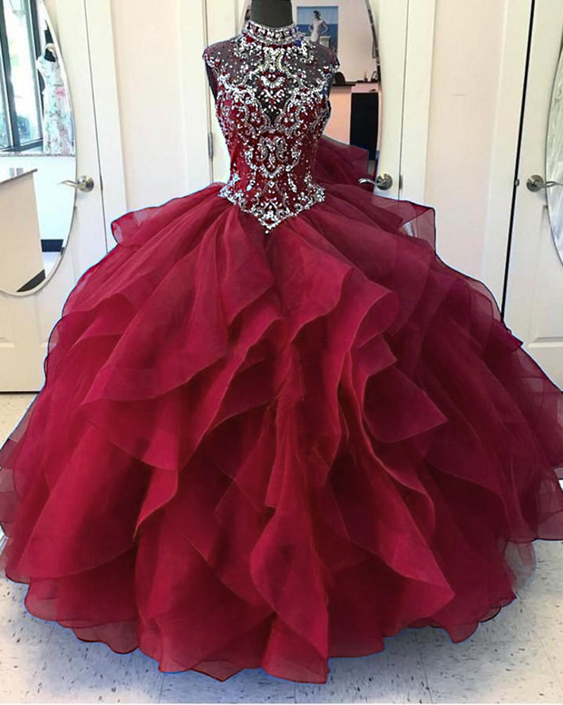 Fantastic High Neck Navy Blue Bodice Corset Ball Gown Sweet 16 Quinceanera Gown Puffy Organza Prom Dress 2022 Debutante LP1151
