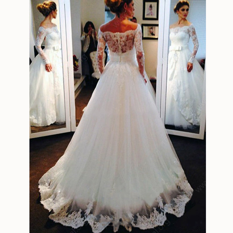 Fantastic Lace Wedding Dress with Long Sleeves Off The Shoulder Bridal Gown hochzeitskleid 2020