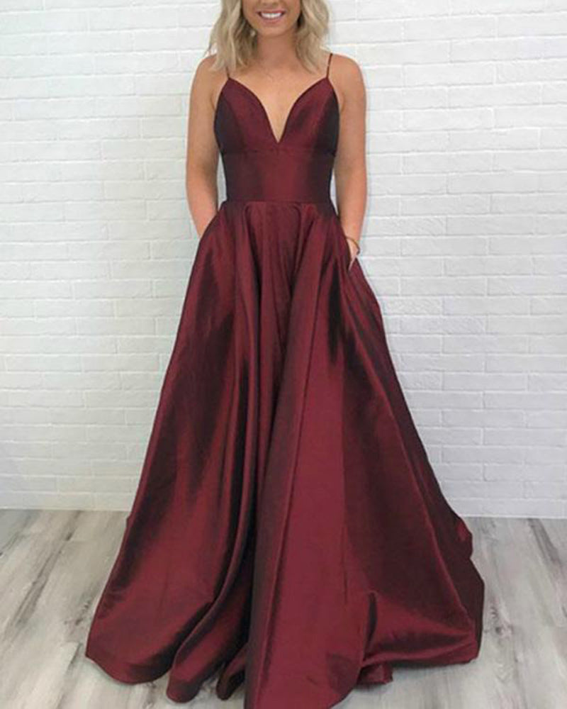 Fashion A Line Satin Long Girls Formal Prom Dress 2022 With Pocket PL5244