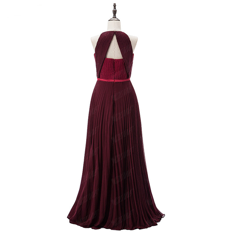 Grape Pleated Chiffon Two Tunes Halter Prom Dresses Long Evening Formal Gowns women