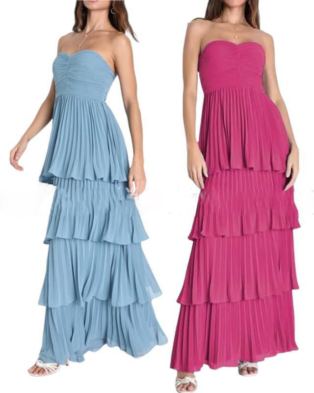 Pink Pleated Long Sweetheart Bridesmaid Dress PL12241