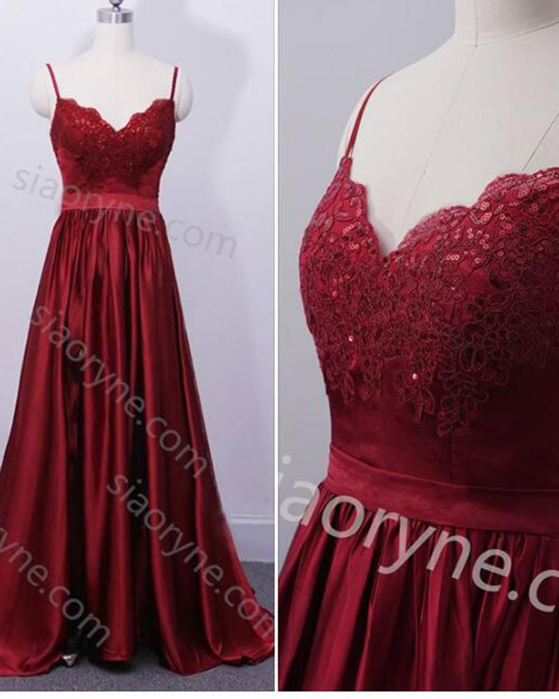 Silk Feeling Satin Spaghetti Strap Long Prom Dresses 2019 PL2103