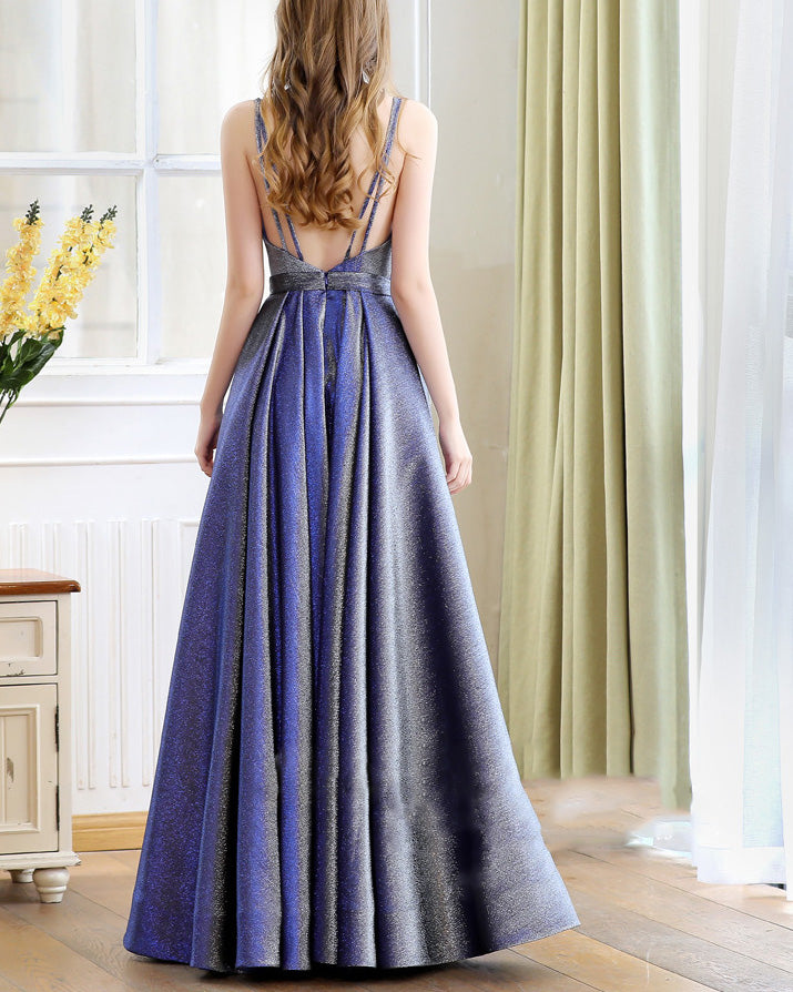 Elegant A Line Glitter Blue Evening Long Dresses 2019 with Straps PL5487