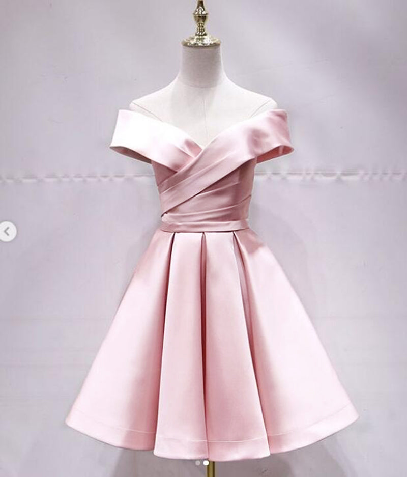 Burgundy Short Prom Dress ,Off Shoulder Satin A Line Short Graduation Homecoming Dress SP09013