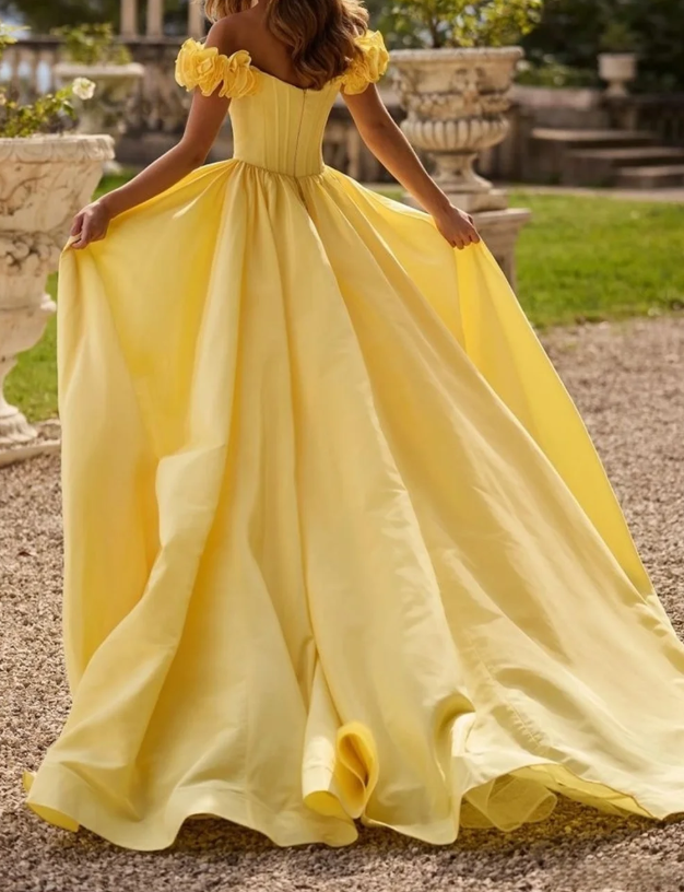 Beautiful Yellow Off Shoulder Mermaid Prom Dress with Train PL1113