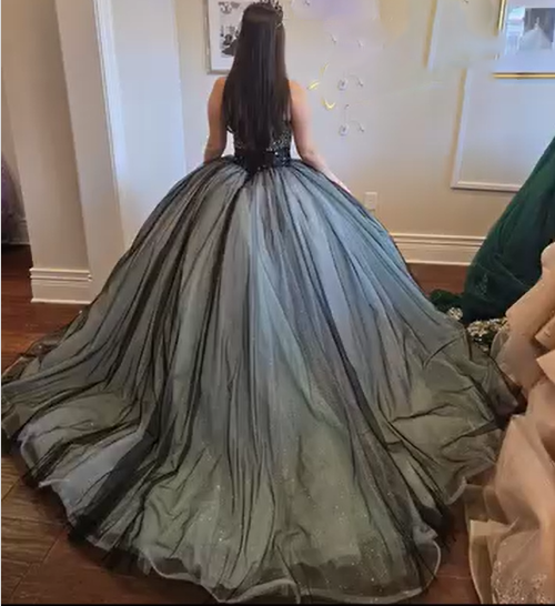 Sweetheart Beaded Princess Black and Gray Ball Gown Prom Dress Wedding Gowns WD1111