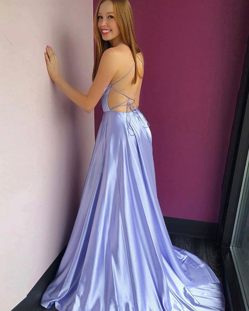 Vestido de fiesta de noche largo con tirantes finos y abertura en la pierna, hermoso vestido de fiesta largo amarillo/rosa/azul PL06181