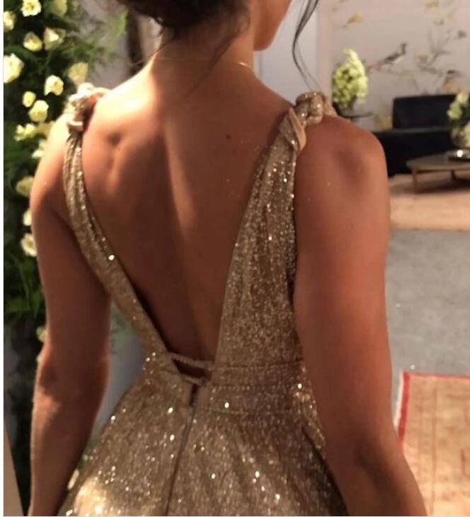 Vestido largo de fiesta de noche con lentejuelas doradas y tirantes brillantes para mujer PL0529