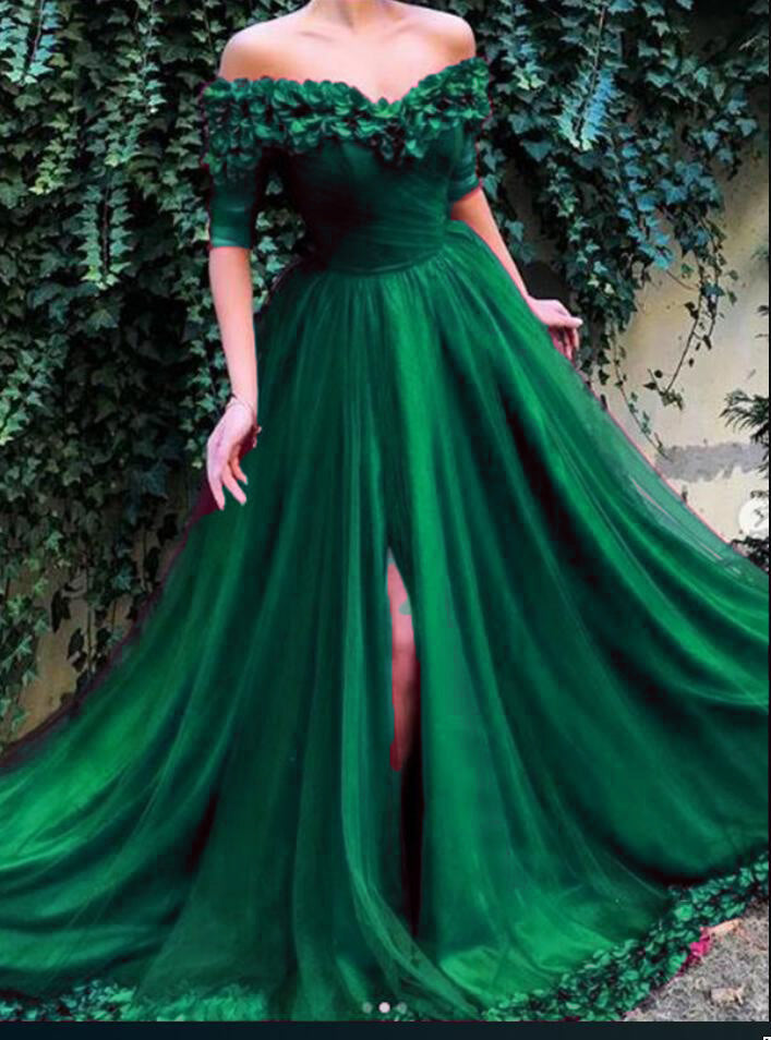Elegantes vestidos de fiesta largos 2019 con hombros descubiertos y flores color burdeos formales con abertura