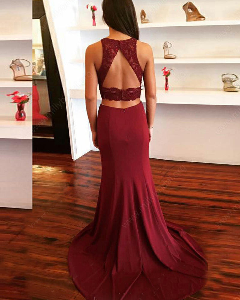 Vestido de fiesta de dos piezas ajustado con escote redondo y encaje 2019 PL2102