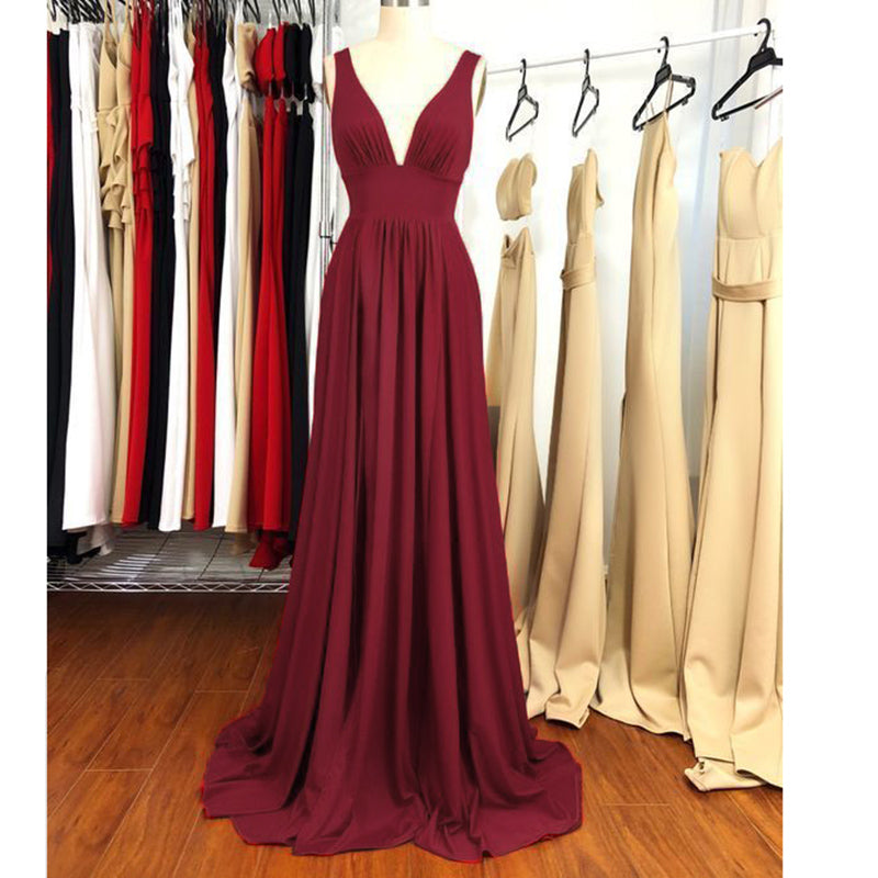 Vestido de fiesta elegante de gasa plisada roja para mujer, vestido formal de noche largo LP841