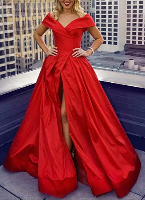 Elegante vestido de fiesta de noche largo azul real con abertura en la pierna en satén con bolsillos PL10228