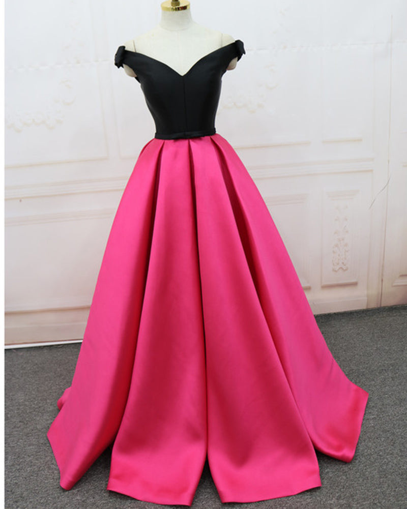 Vestidos de fiesta formales de satén rosa brillante/negro de dos tonos a la moda, vestidos de fiesta largos 2022