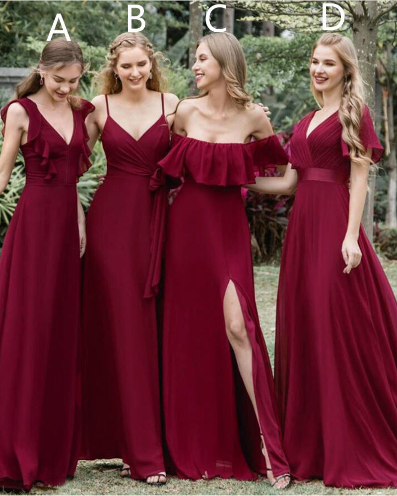 Vestidos de dama de honor de gasa color burdeos, vestidos largos para fiesta de bodas para mujeres PL08153