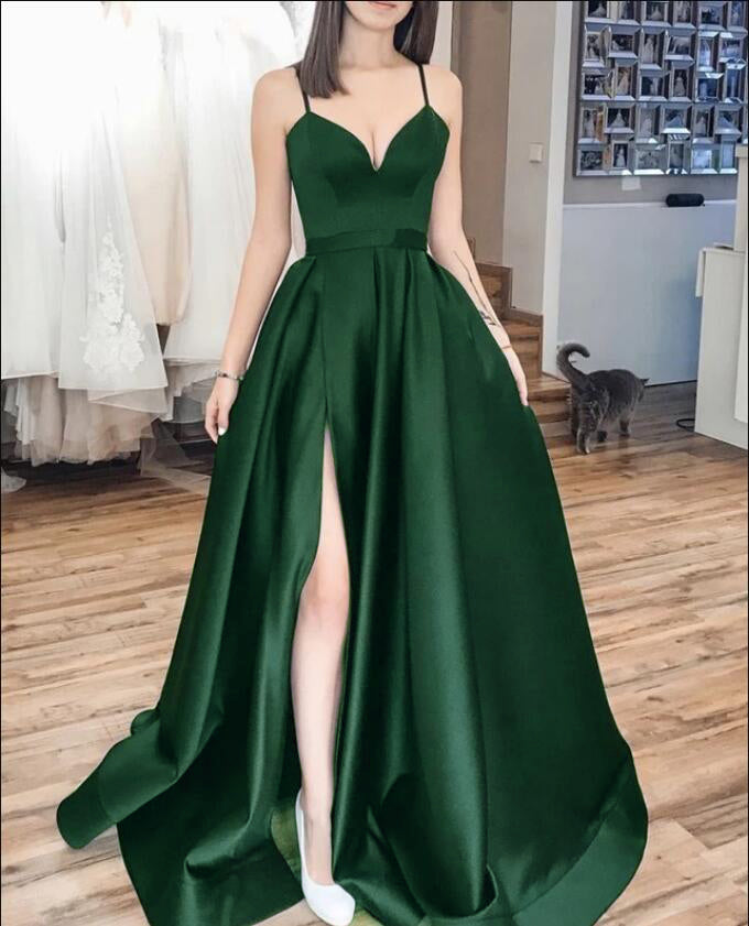 Vestido largo de fiesta rojo oscuro con tirantes finos y aberturas, encantador, vestidos formales PL1018