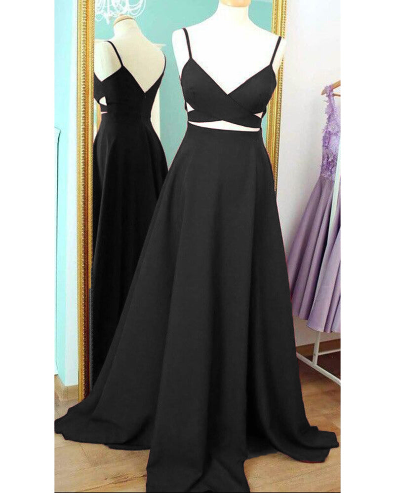 Vestidos de fiesta formales de noche con tirantes finos largos y elegantes en color burdeos 2020