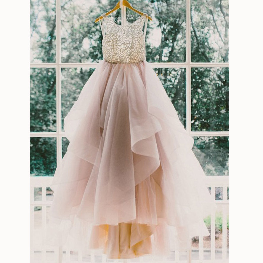 Vestido de novia de moda de ensueño, vestido de novia marrón con cuentas, vestido escalonado, vestido de novias