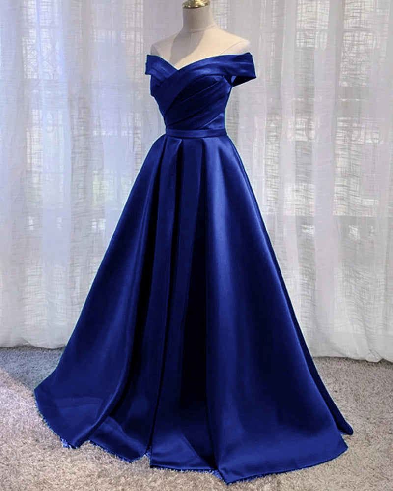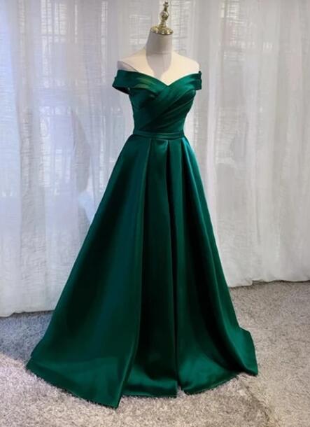 Elegante vestido de fiesta formal de satén verde con hombros descubiertos y corte en A en oferta a un precio económico 2022 PL0517