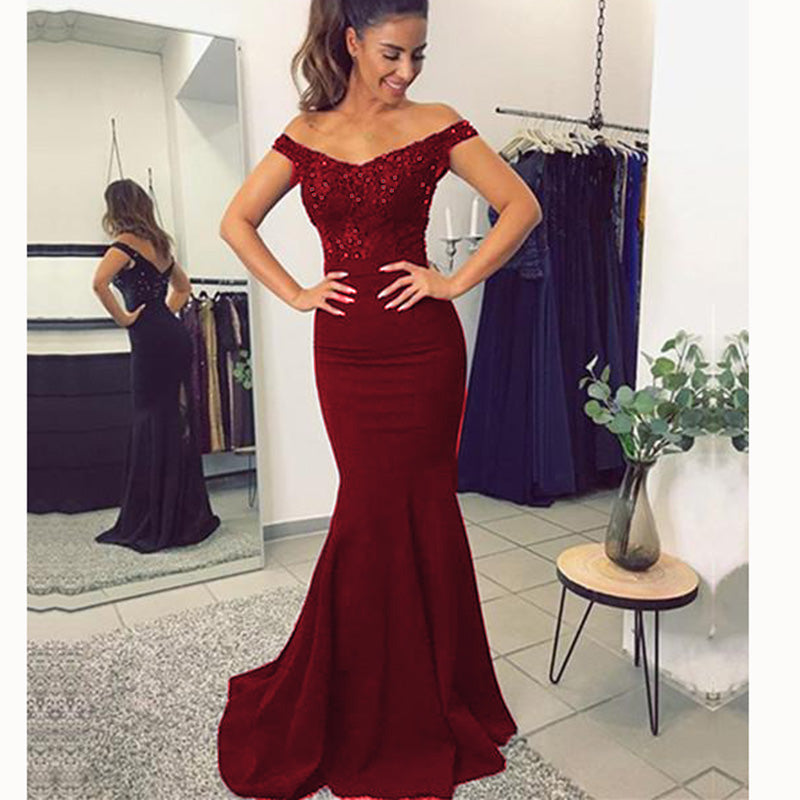 Elegante vestido de noche formal de sirena con hombros descubiertos para mujer, vestido de dama de honor para adultos