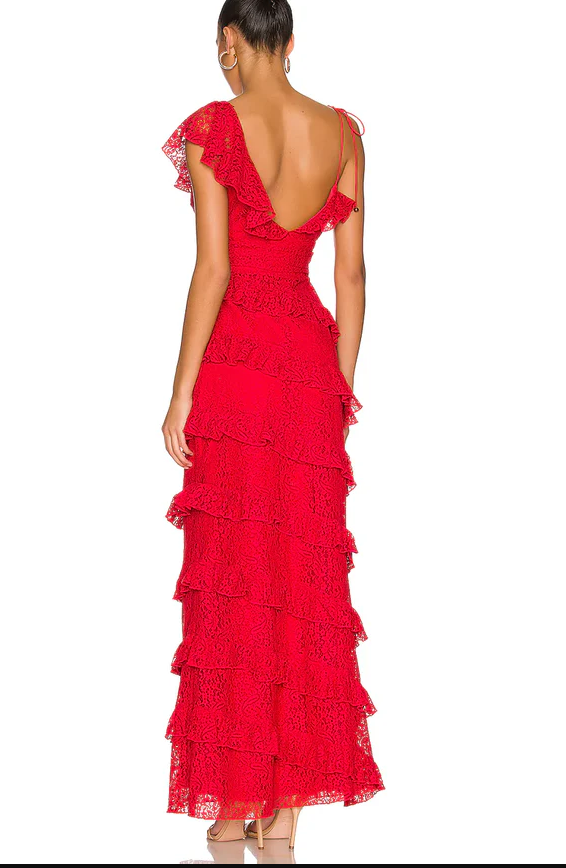 Elegant Red Lace Evening Dress Long Sheath Formal Gown with Slit PL712