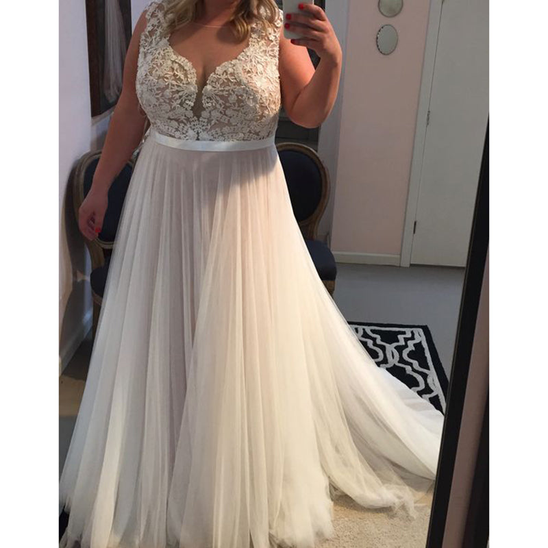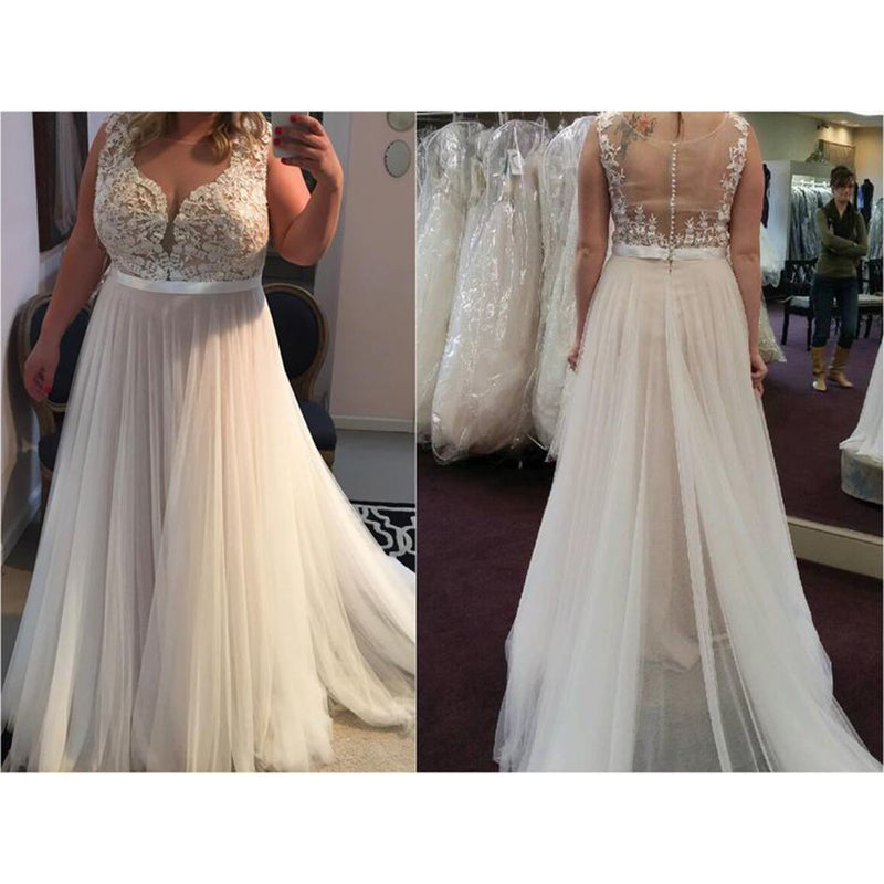 Elegante vestido de novia sencillo de tul con encaje en forma de A para mujer, vestido de novia de talla grande, hecho a medida WD06221