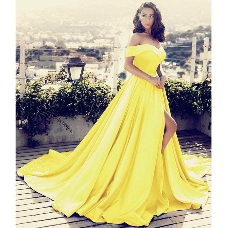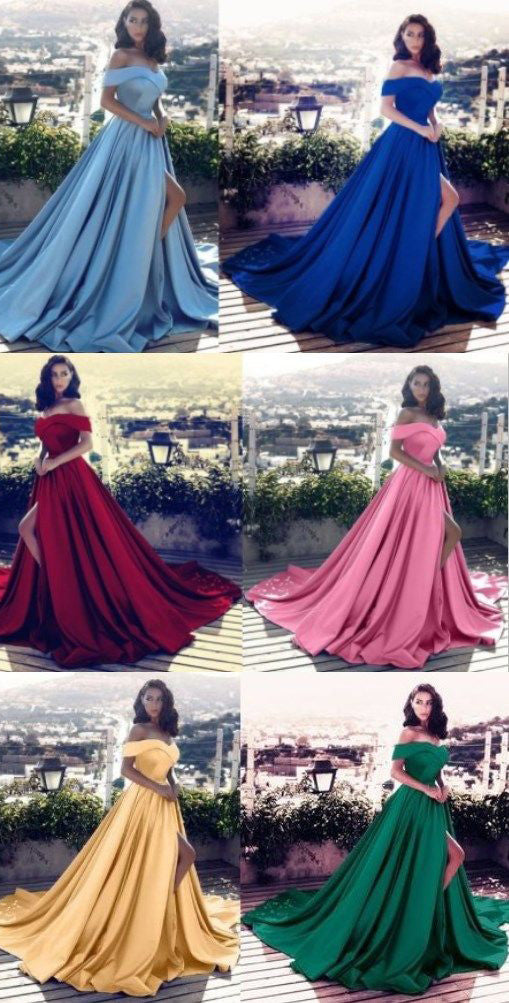 Elegante vestido de fiesta azul cielo, corte A, satén, largo, formal, de noche, con abertura, LP716