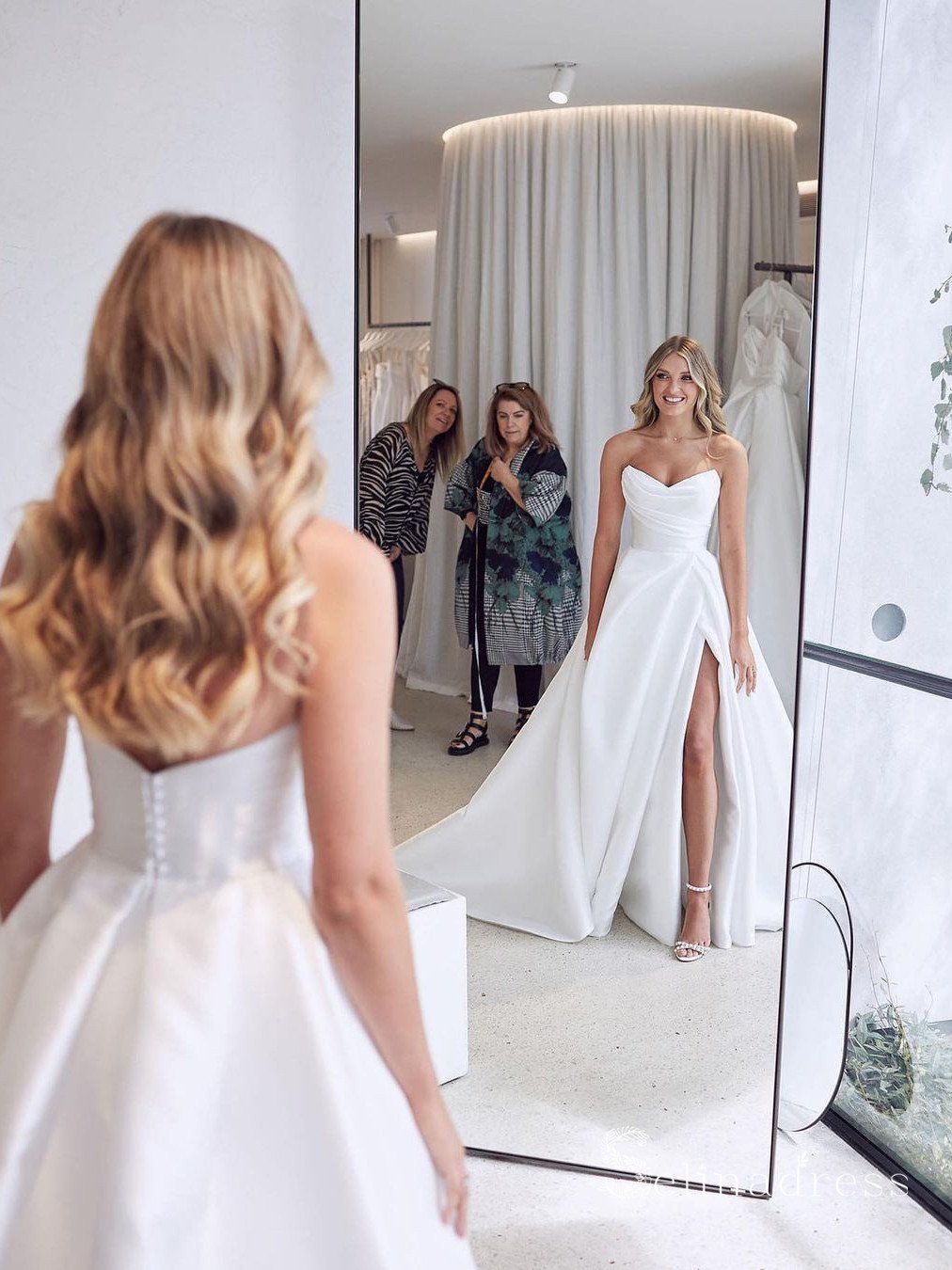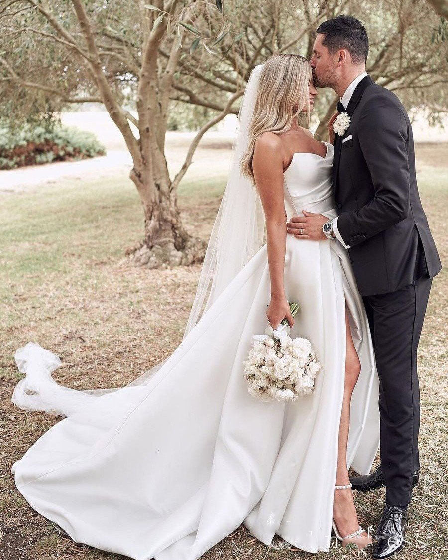 Elegante vestido de novia de satén color marfil con escote en forma de A, vestido de novia con abertura WD10911