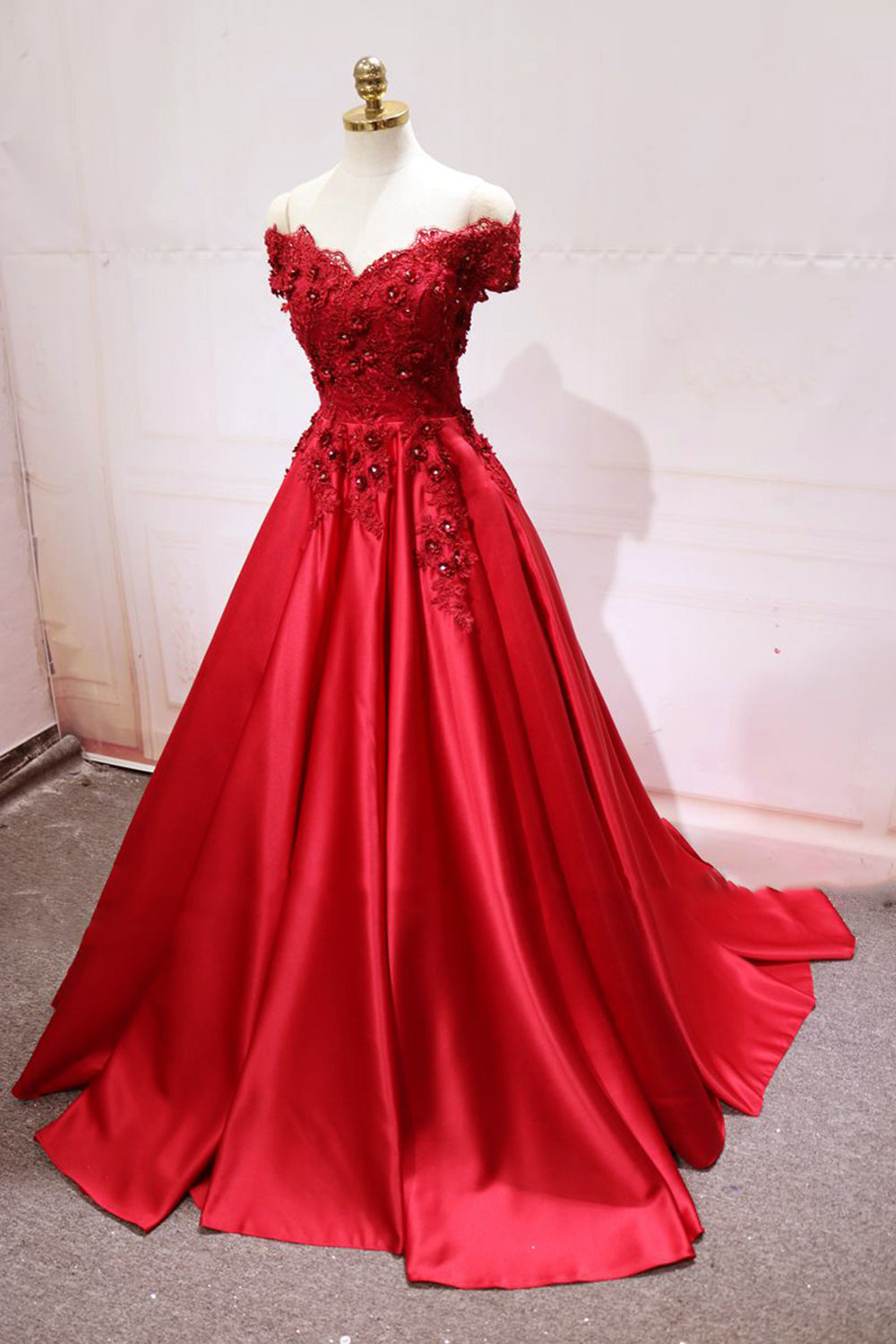 Vestido formal verde esmeralda con hombros descubiertos y largo de encaje para fiesta de boda para mujer PL0814