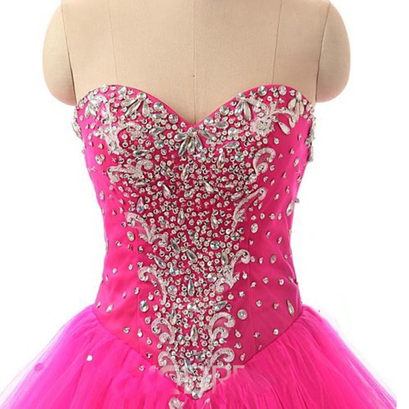 Vestido de fiesta de máscaras con escote en forma de corazón color fucsia, vestido de fiesta de tul con cuentas y cristales, vestido de quinceañera