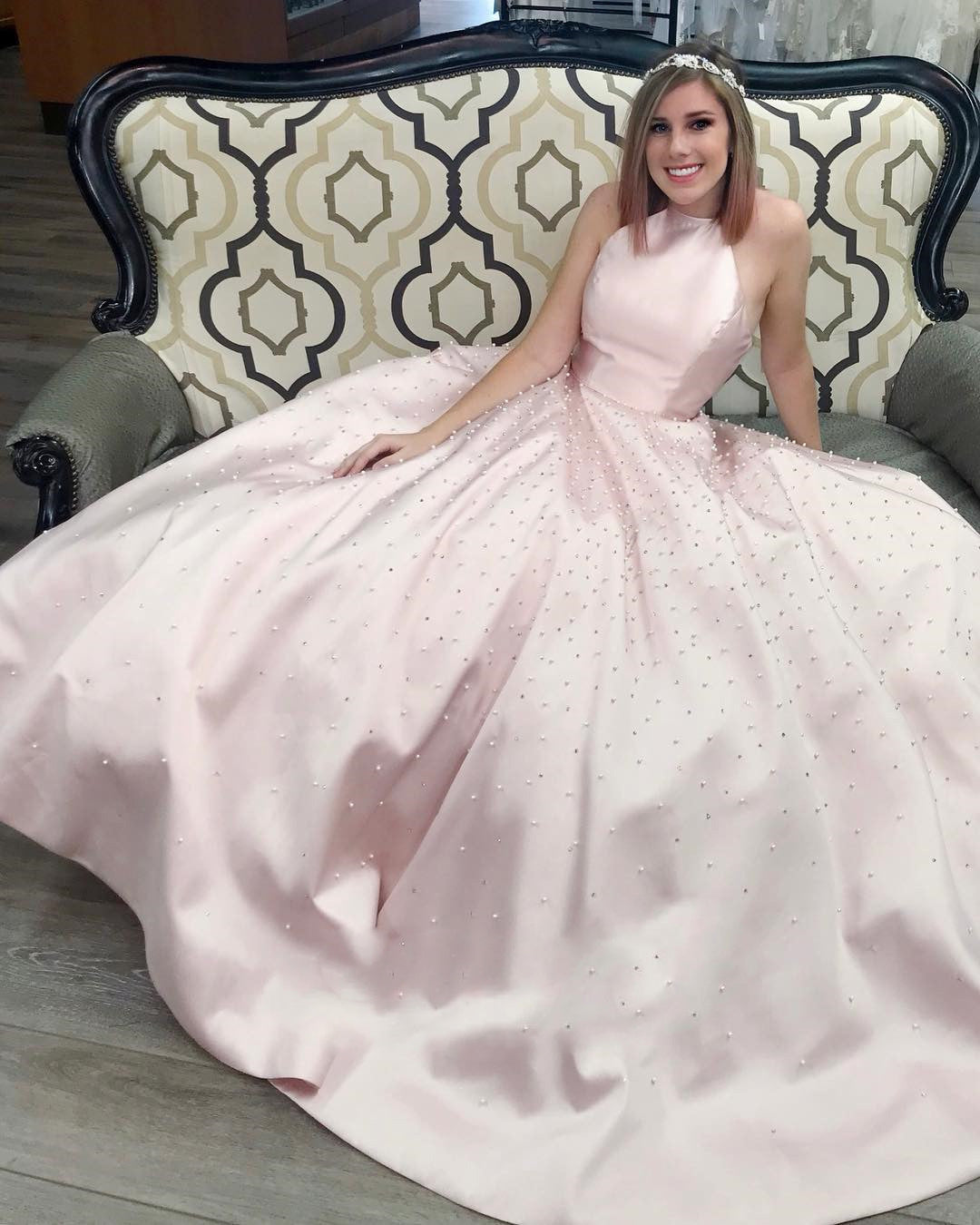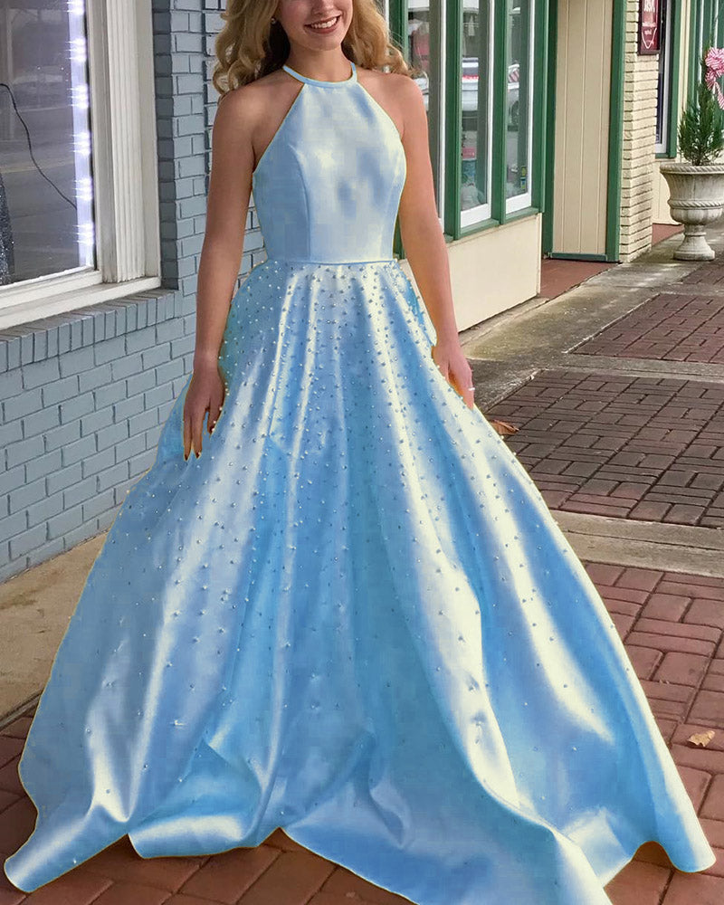 Vestido de graduación largo para niñas, vestido de fiesta amarillo con escote halter y perla amarilla, rosa y azul PL8877