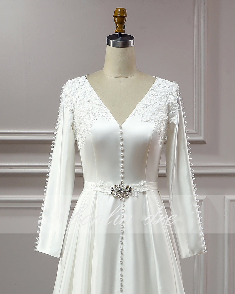 No todos los vestidos están en stock. Tanto si eliges una talla estándar como medidas personalizadas, todos nuestros vestidos se confeccionan a medida para ti. Además, todos nuestros vestidos están hechos a mano. No comenzaremos a confeccionar el vestido hasta que recibamos tu pedido.