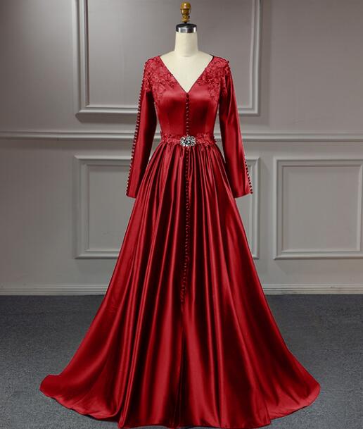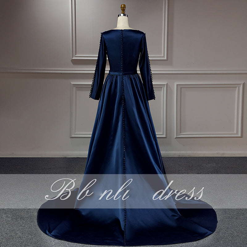 Vestido de noche caftán marroquí de satén con mangas en forma de A, elegante vestido de noche largo para boda, caftán marroquí MF001