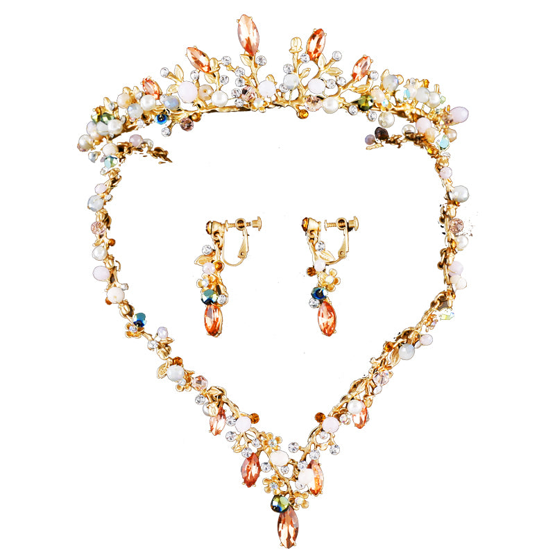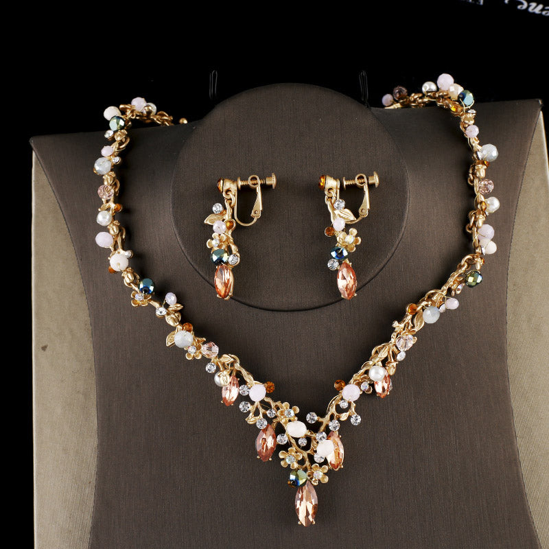Conjunto de collar y pendientes, conjunto de joyas para novia, boda, estilo de flores de cristal, accesorios de joyería para fiesta para mujer